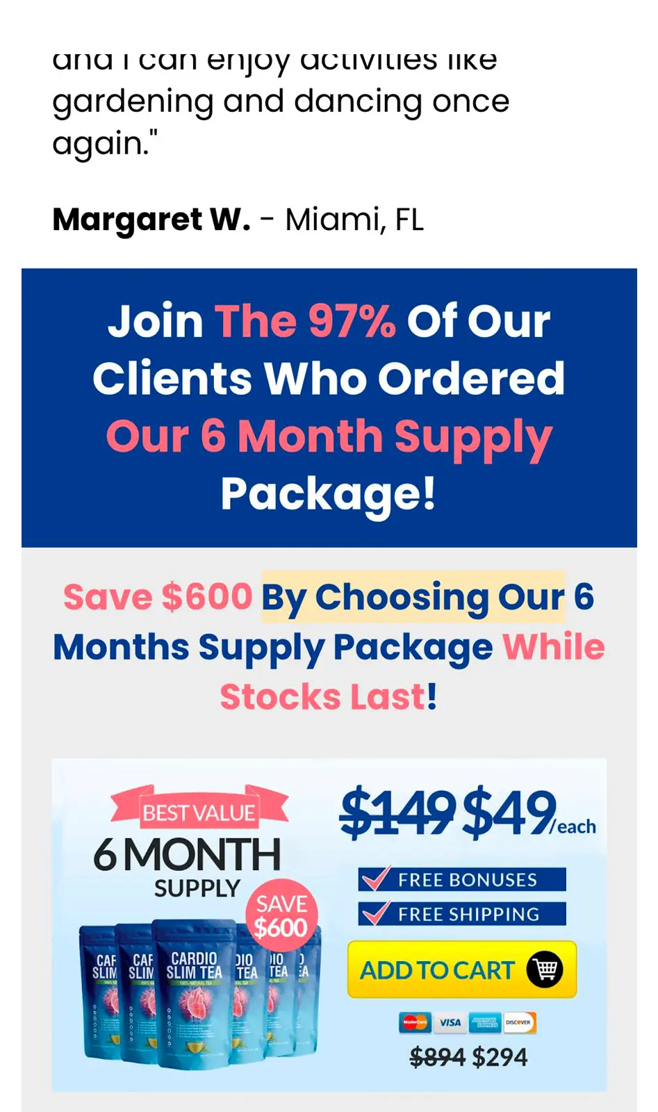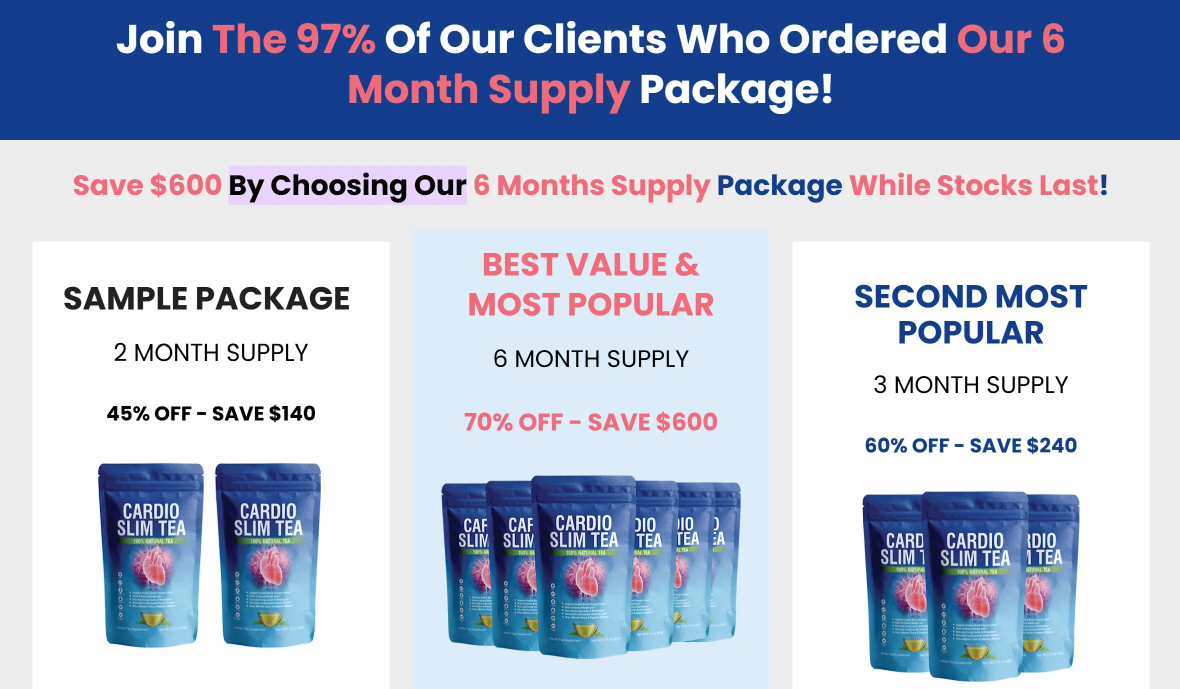 Cardio Slim Tea™ is marketed as a plant-based tea blend designed to support healthy blood pressure and weight-management efforts as part of a balanced routine. To confirm current pricing, bundle options, shipping, guarantees, and full ingredient details, use the official site link below.
